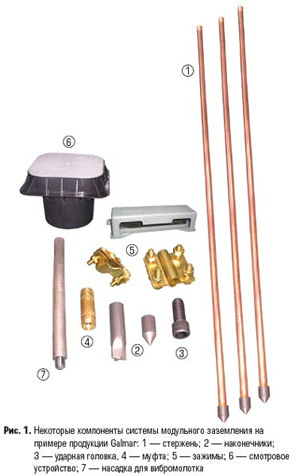модульный принцип построения заземления(установка вибромолотом путем постепенного наращивания);